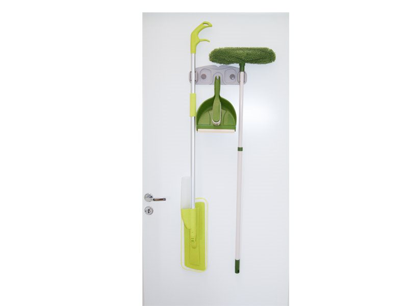 Denne smarte løsning, gør opbevaring og organisering af koste, mopper, støvkoste og andre rengøringsredskaber nemmere og mere pladsbesparende.