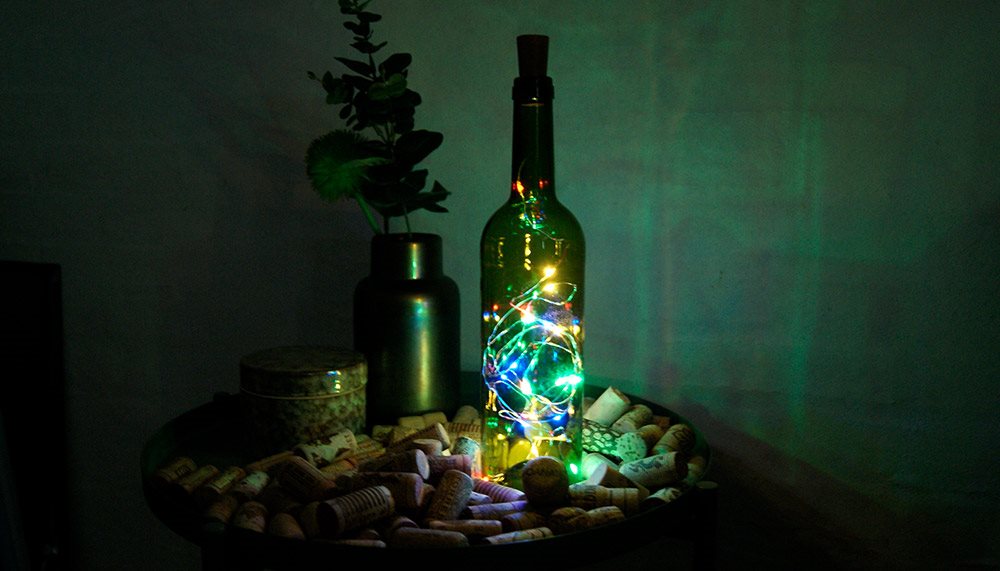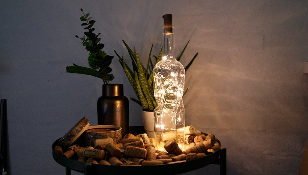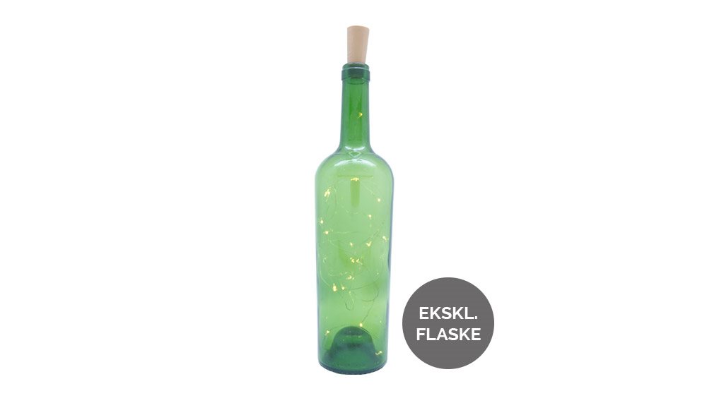 Smart lyskæde med imiteret vinprop, som giver et hyggeligt lys i tomme glasflasker. Perfekt til: Fester, jul, nytår, dekoration og meget mere! Kan også bruges til andre dekorative formål. Bottle Lights bruger 3 x LR44 batterier som er inkluderet.
