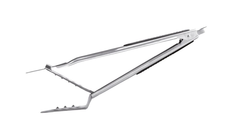 Det nye multifunktionelle grillredskab er en kombineret spatel, grilltang og grillgaffel. Ideel til grillen, men kan også bruges i køkkenet.