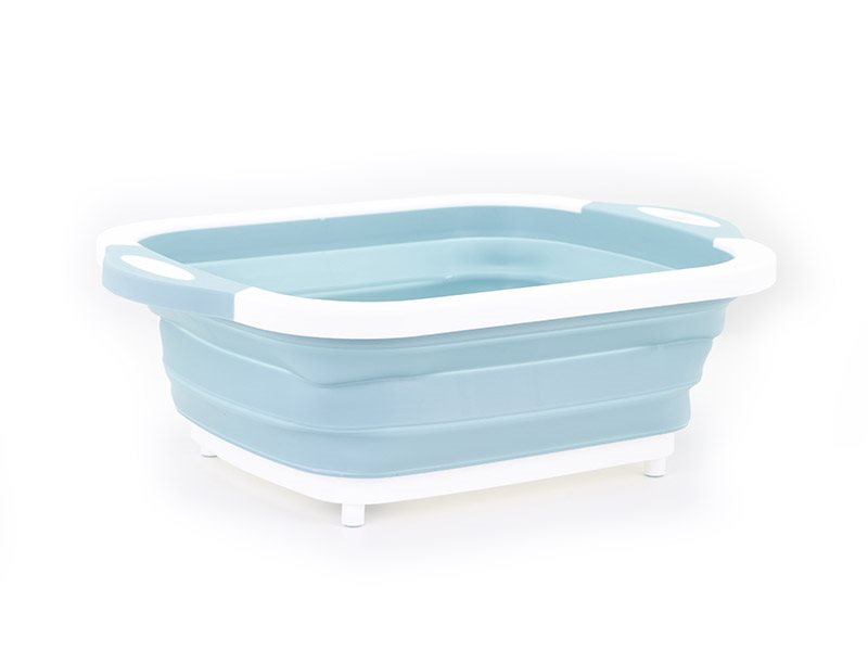 Foldbar kombination af skærebræt og vaskebalje med afløb