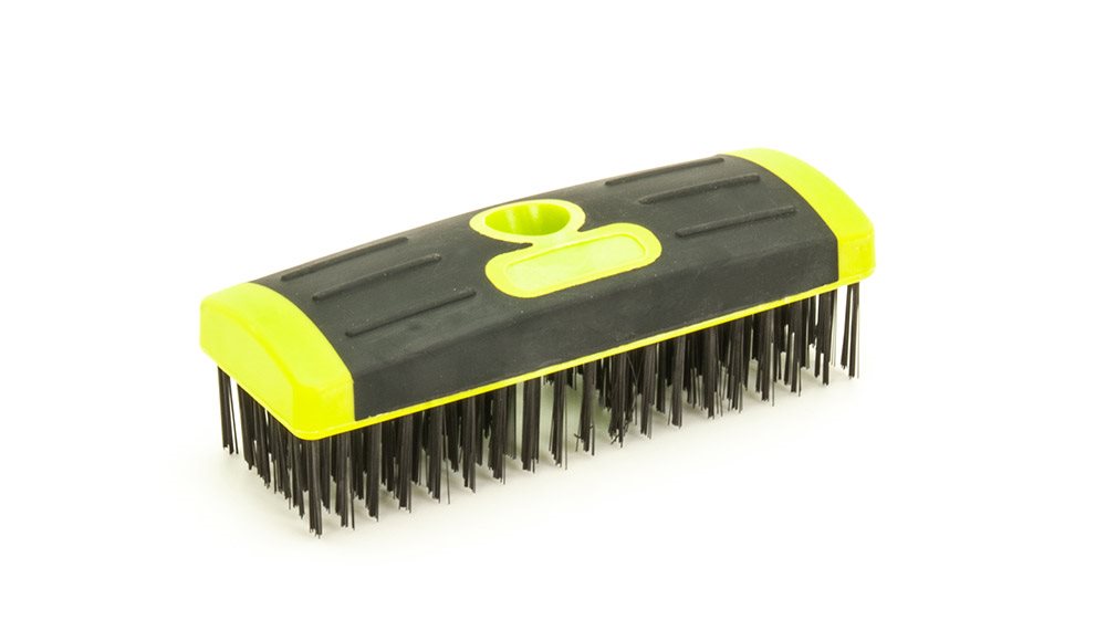 Terrasse- og belægningsbørsten bruges til Fliserensesættet, hvis det første hoved som følger med sættet, er slidt op.