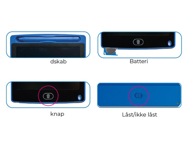 Ingen tuschfarve, der kan smitte af, hvis ungerne kommer til at tegne på møbler, bilsæder, gulve, vægge eller meget andet. Skriveredskabet kan kun tegne på paden.