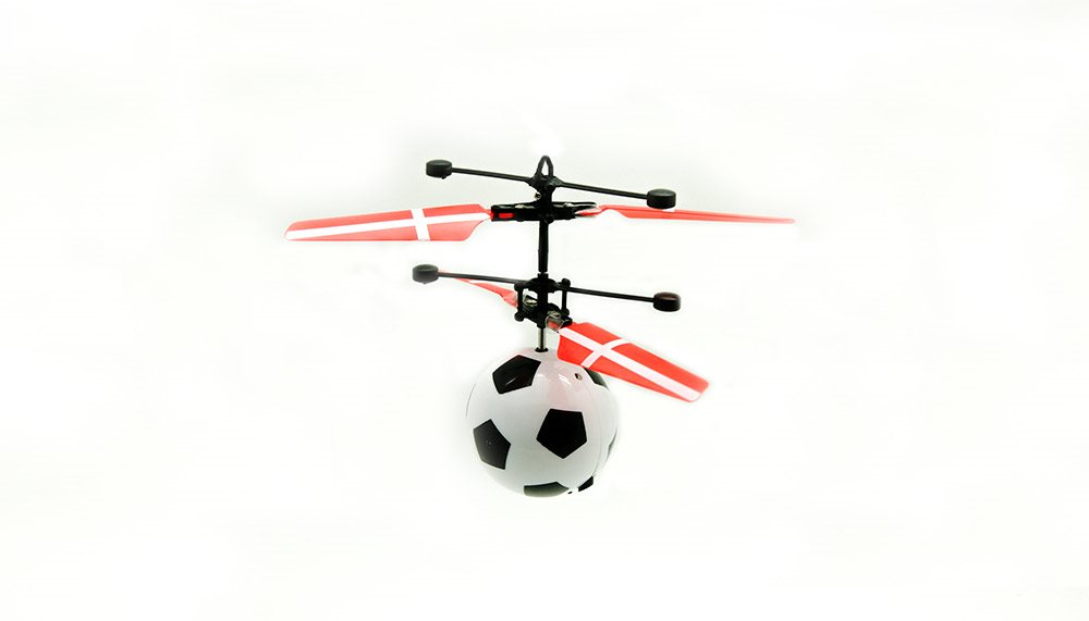 Den seje og sjove fodbold drone "Hut-li-hut" er specielt designet med danske flag!
