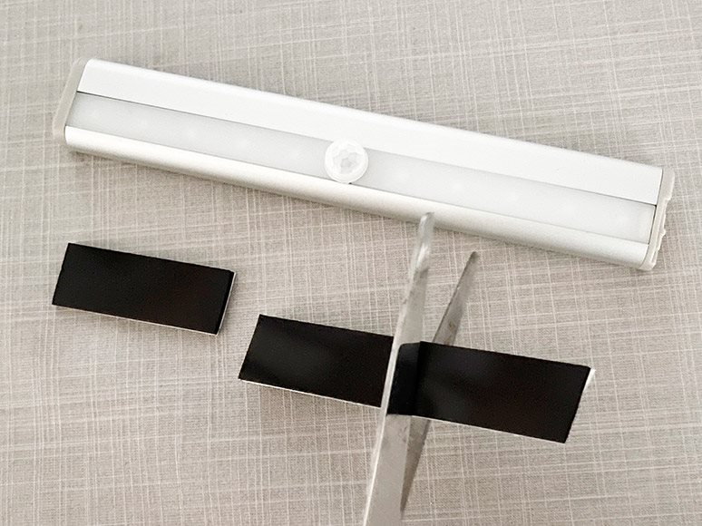Den magnetiske base monteres let, ét eller flere steder, med den dobbeltklæbende tape. Light Bar kan nemt tages ned og efter behov også anvendes som håndholdt lygte. Selve magnetstriben kan klippes over i mindre stykker, hvis du vil have at lampen skal kunne sidde flere steder (husk blot at brug 2 mindre stykker, så det kan sidde en magnet i hver side.)