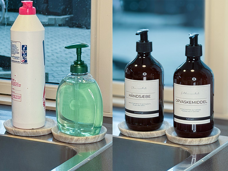 Er du træt af de mange forskellige sæbeflasker i brusenichen? Eller opvaskemiddel og håndsæbe der ikke passer sammen ved køkkenvasken og bare får det hele til at se lidt mindre gennemført ud?